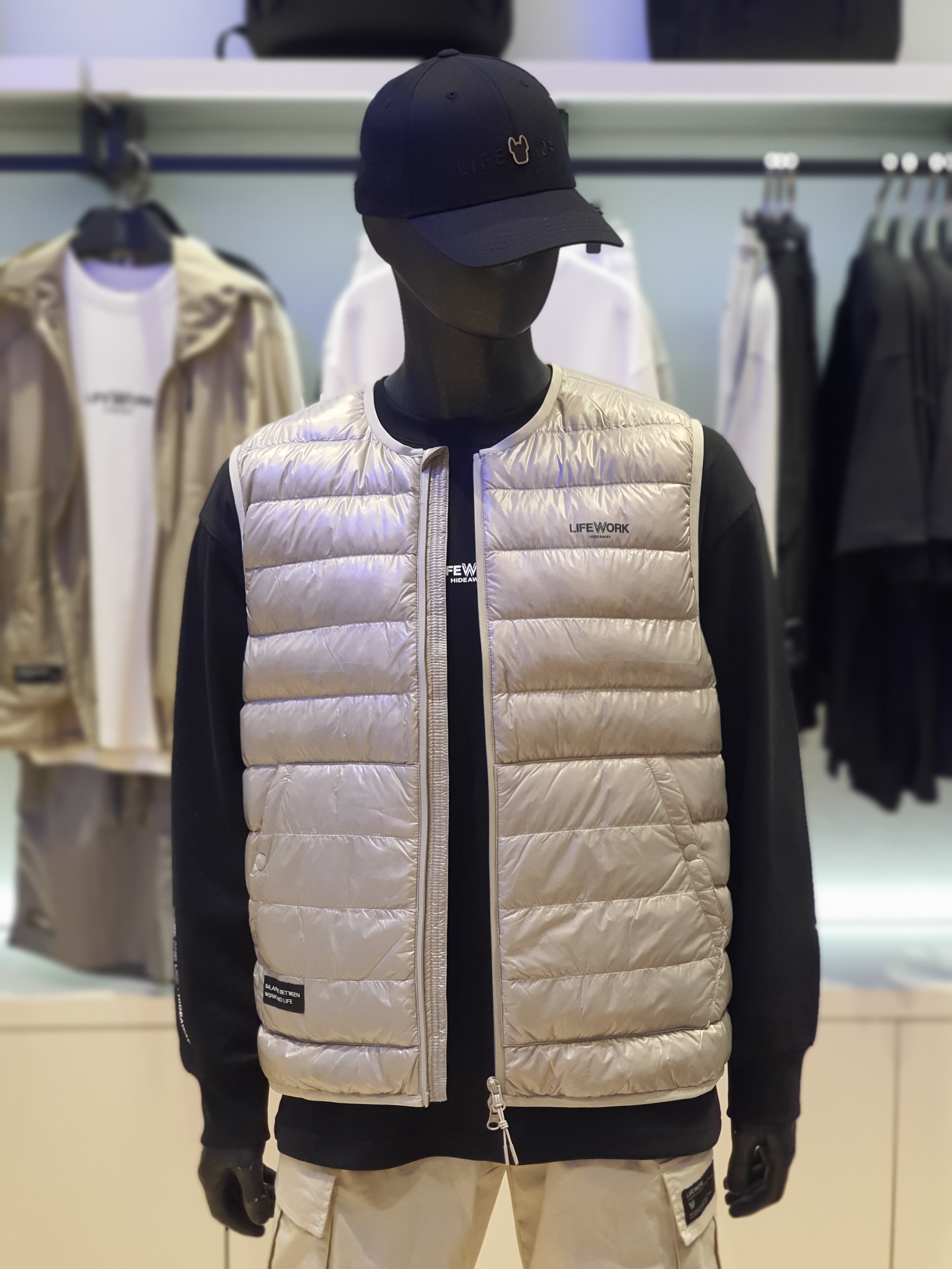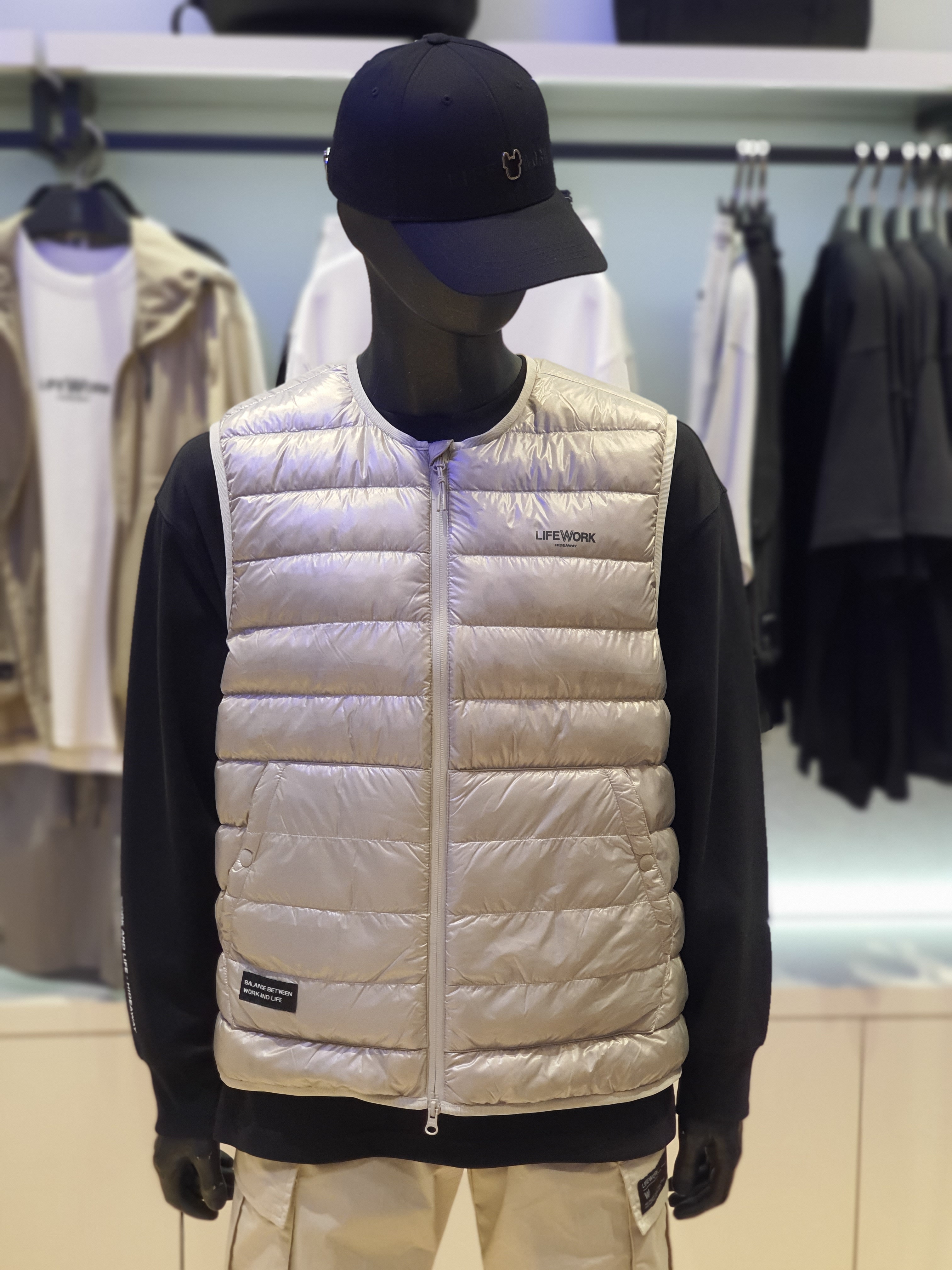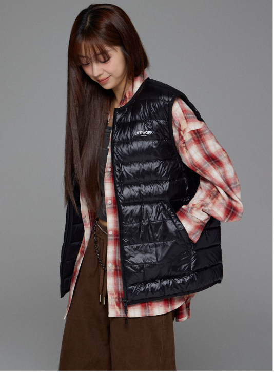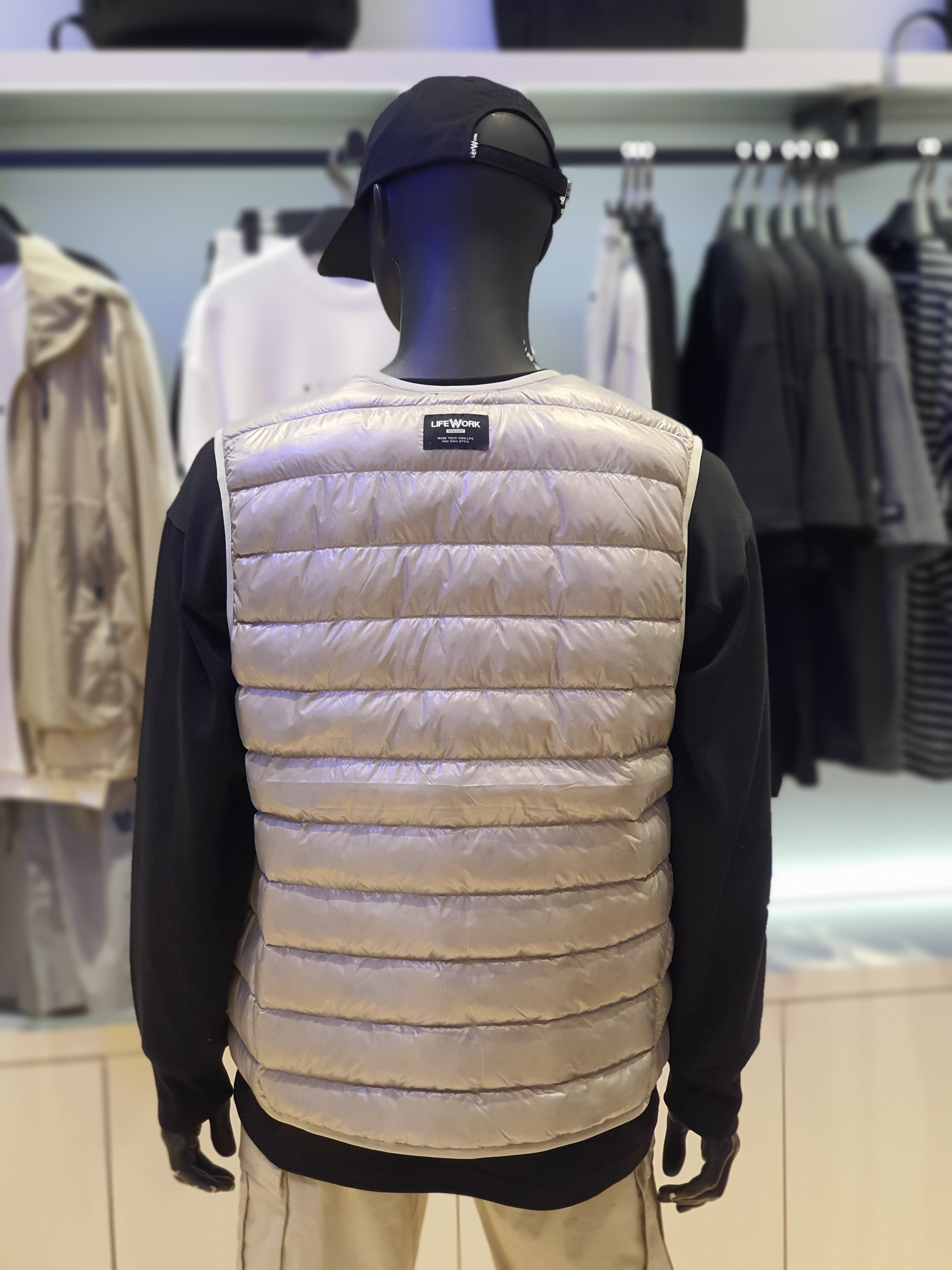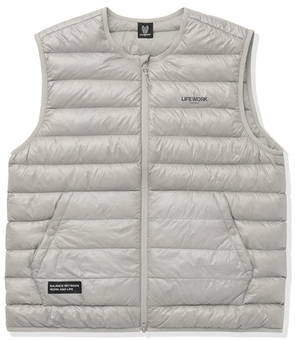 韓國直送 Life Work - 絎縫十字條紋輕便羽絨背心(通用)(STONE)