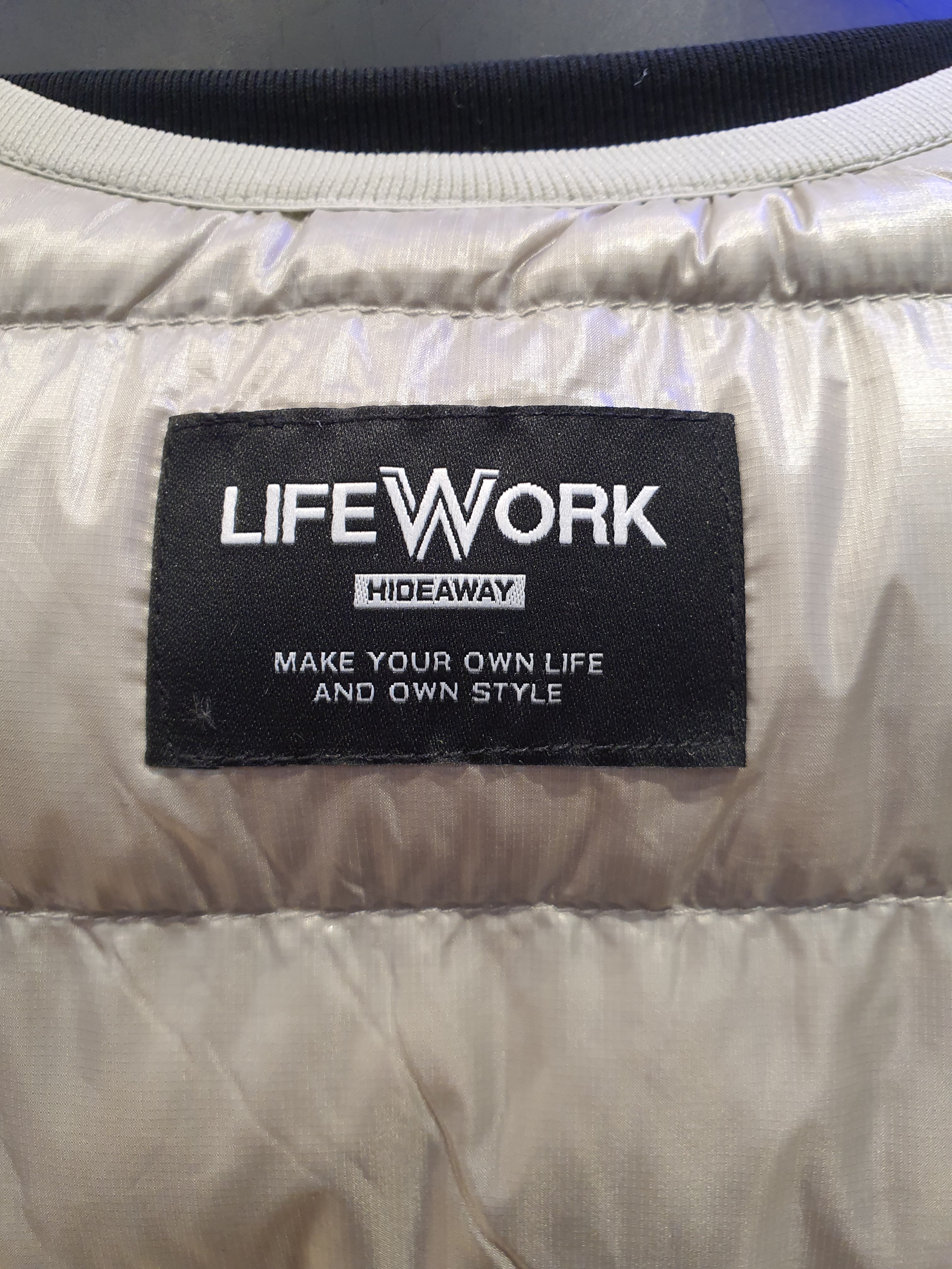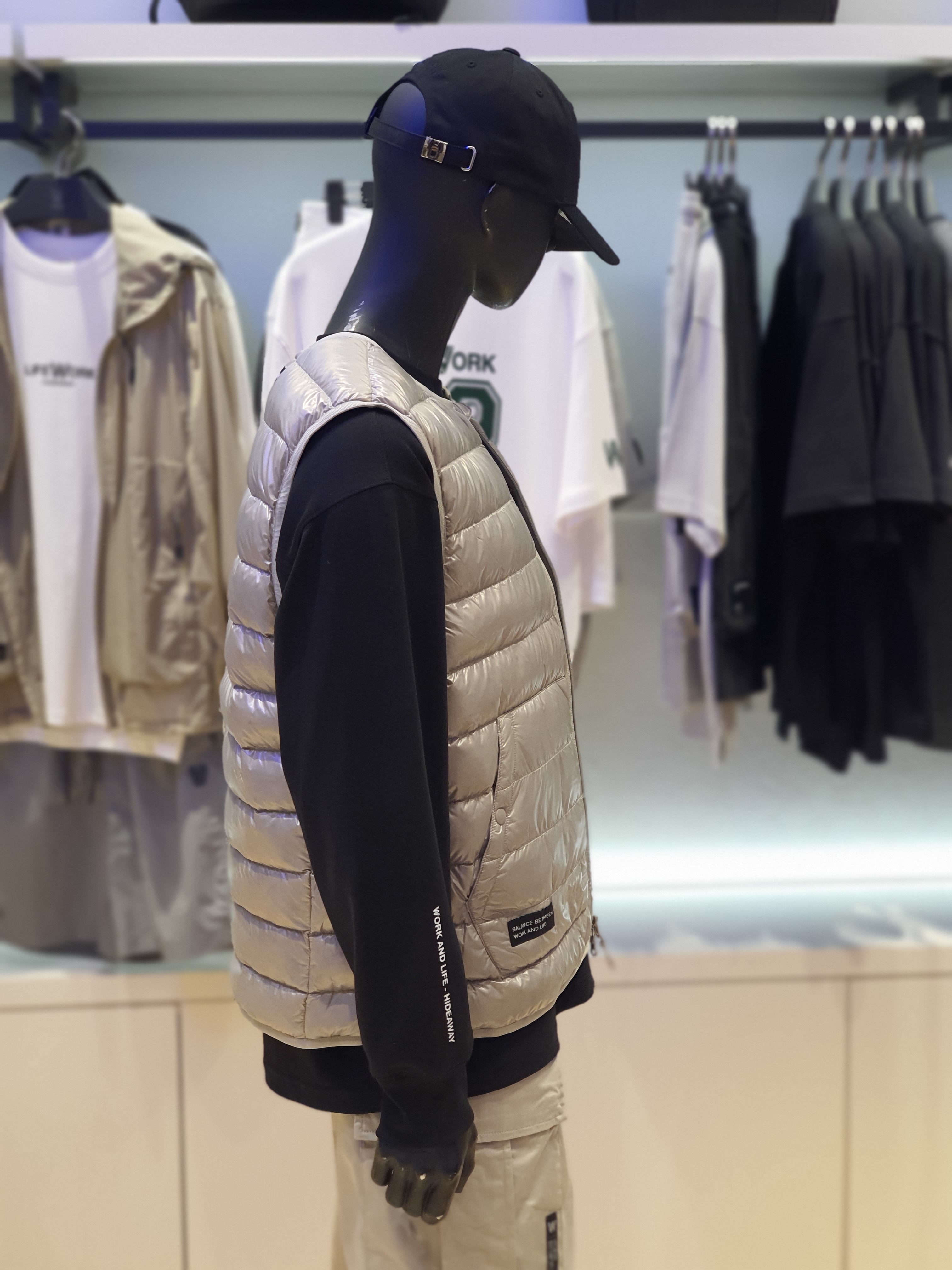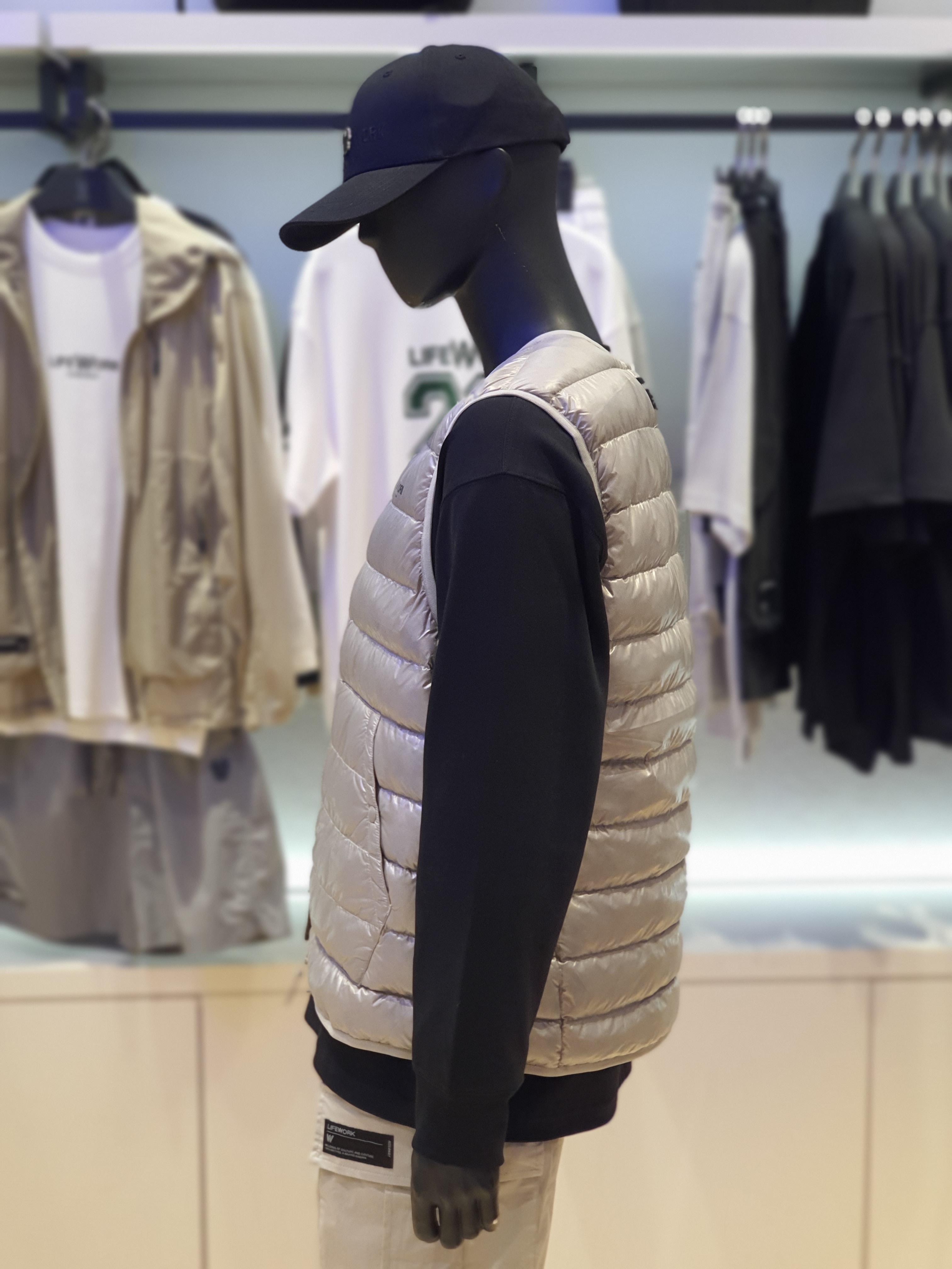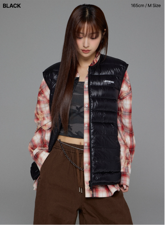 韓國直送 Life Work - 絎縫十字條紋輕便羽絨背心(通用)(STONE)