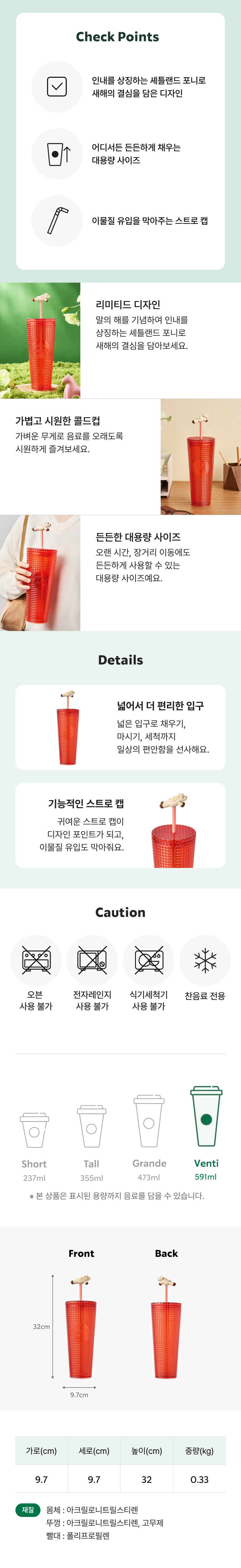 韓國 STARBUCKS - Baby Pony 小馬格子冷水杯 710ml