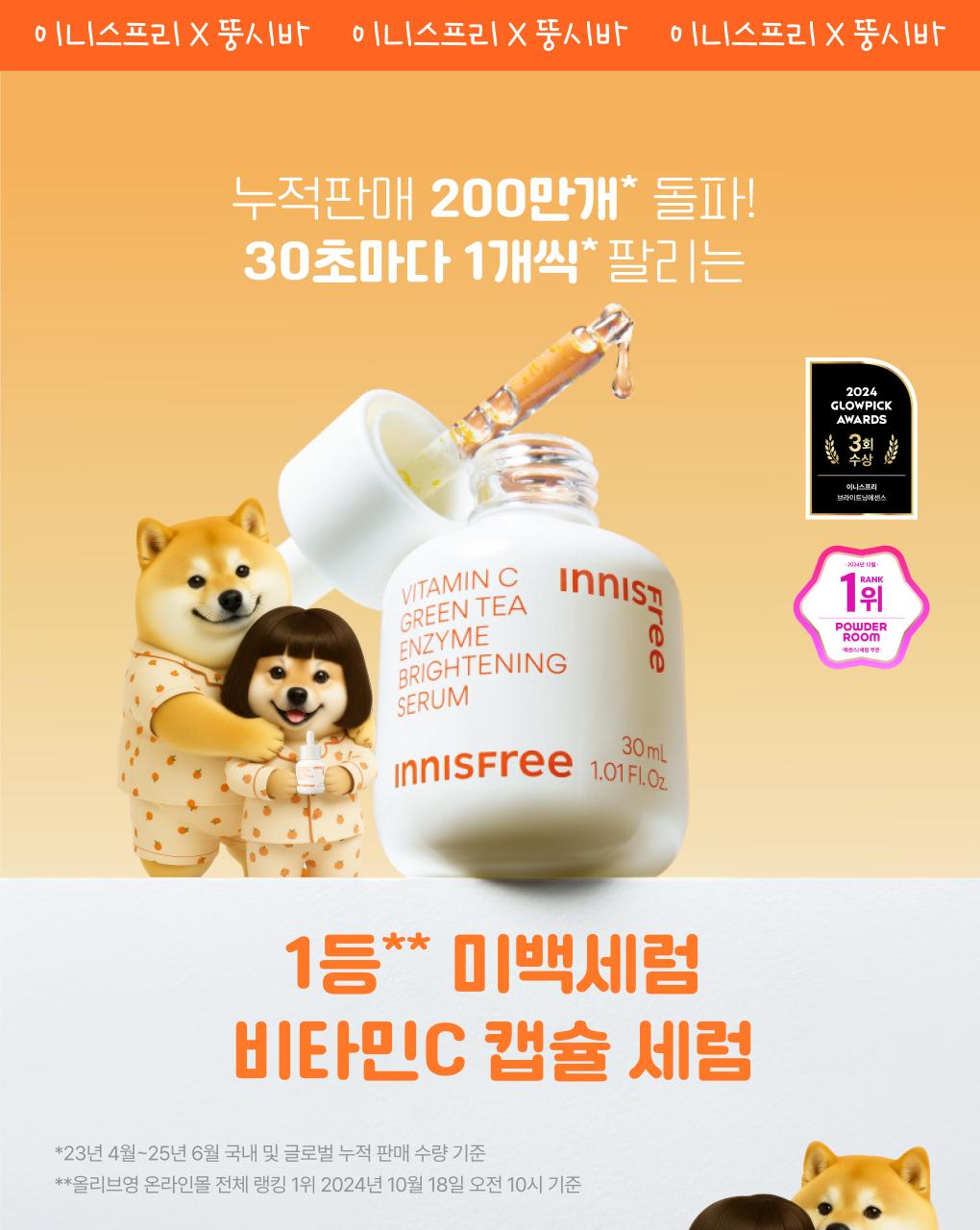 【1+1限定企劃/贈送鑰匙圈】韓國 Innisfree 維他命C膠囊精華30ml雙重套裝