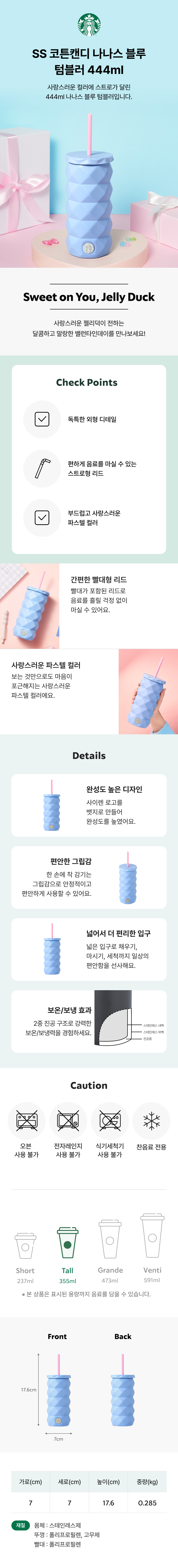 韓國 STARBUCKS SS 棉花糖 Nanas 藍色隨行杯 444ml