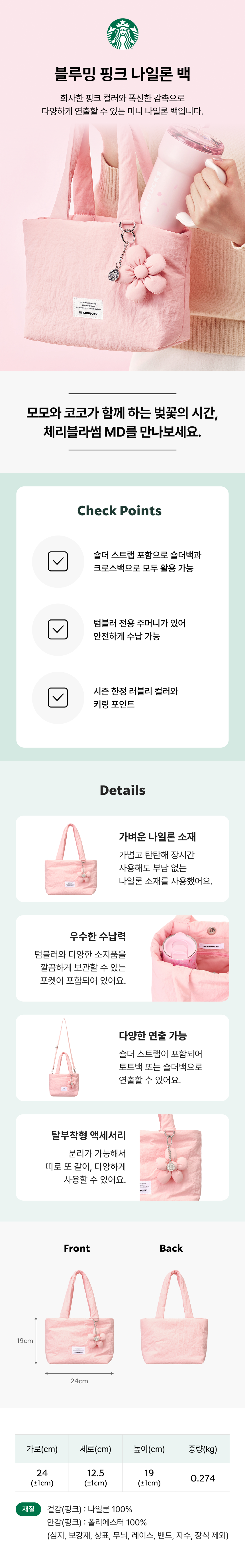 韓國 STARBUCKS Blooming 粉紅尼龍手提袋(輕便耐用|休閒百搭)