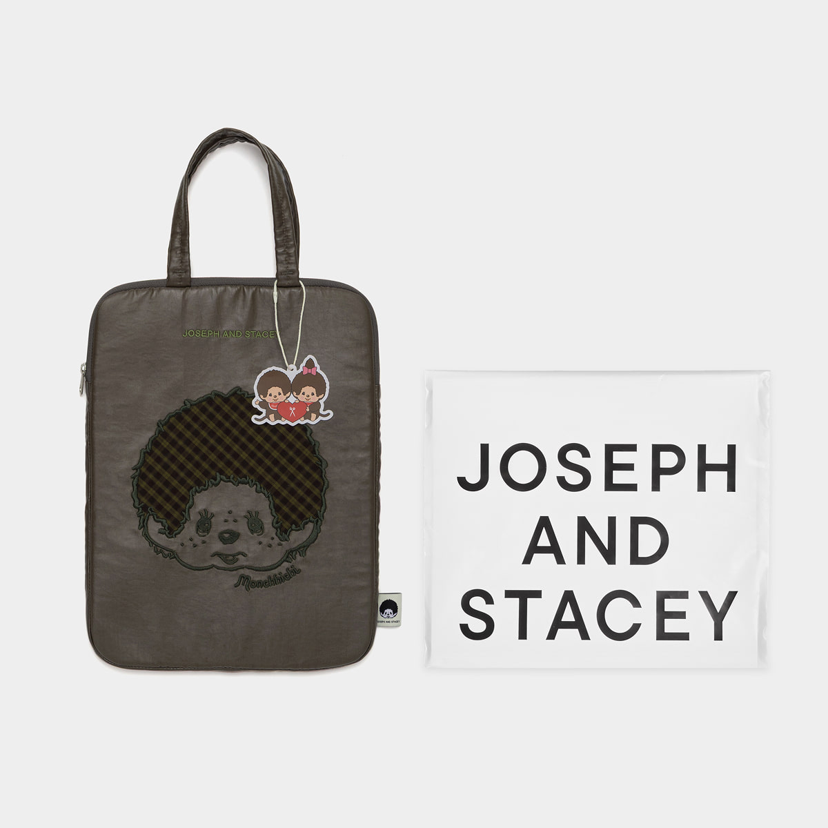 Joseph And Stacey x Monchhichi 聯名款 ♡ 可反轉手提袋 女仔黑色光滑平板電腦袋 13吋 男仔卡其色