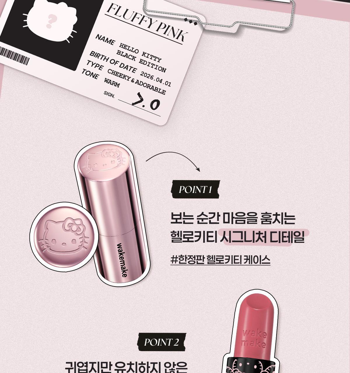 「Hello Kitty 黑色限定版 / 部分色號贈送髮夾」 WAKEMAKE Healthy Glow 護唇棒