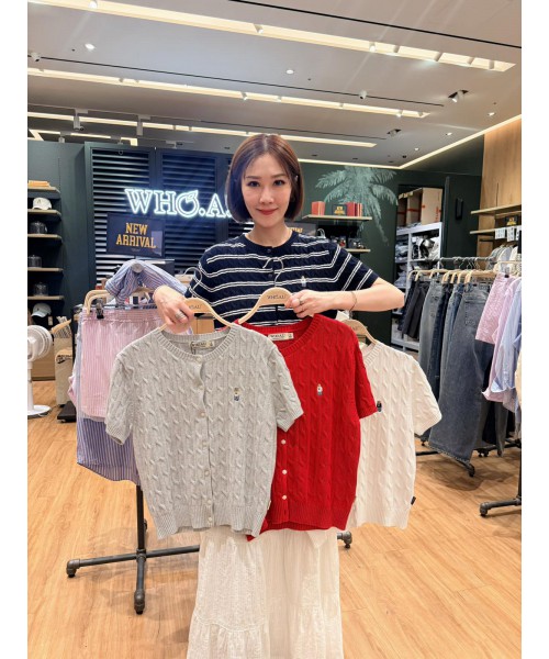 LAU405 韓國直送 WHOAU - Steve R-neck Cable ShortSleeve Cardigan
