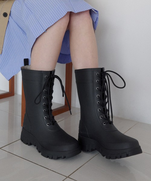 rockfish-weatherwear - FLATFORM LACEUP RAIN BOOTS MIDDLE - BLACK